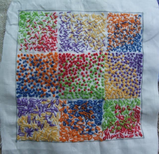 into something coherent and presentable. I am woefully behind in comparison to my more experienced fellow stitchers. But I have been having fun. One of the bits I've been working on stems from one of the colour exercises.