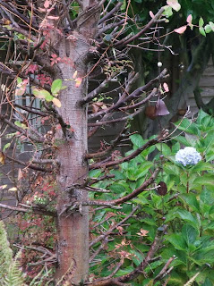 Meanwhile the garden is dipping towards winter. The silver silhouette of the walnut is starting to shine up from the bottom of the garden, a few yellow leaves still clinging to its branches.
